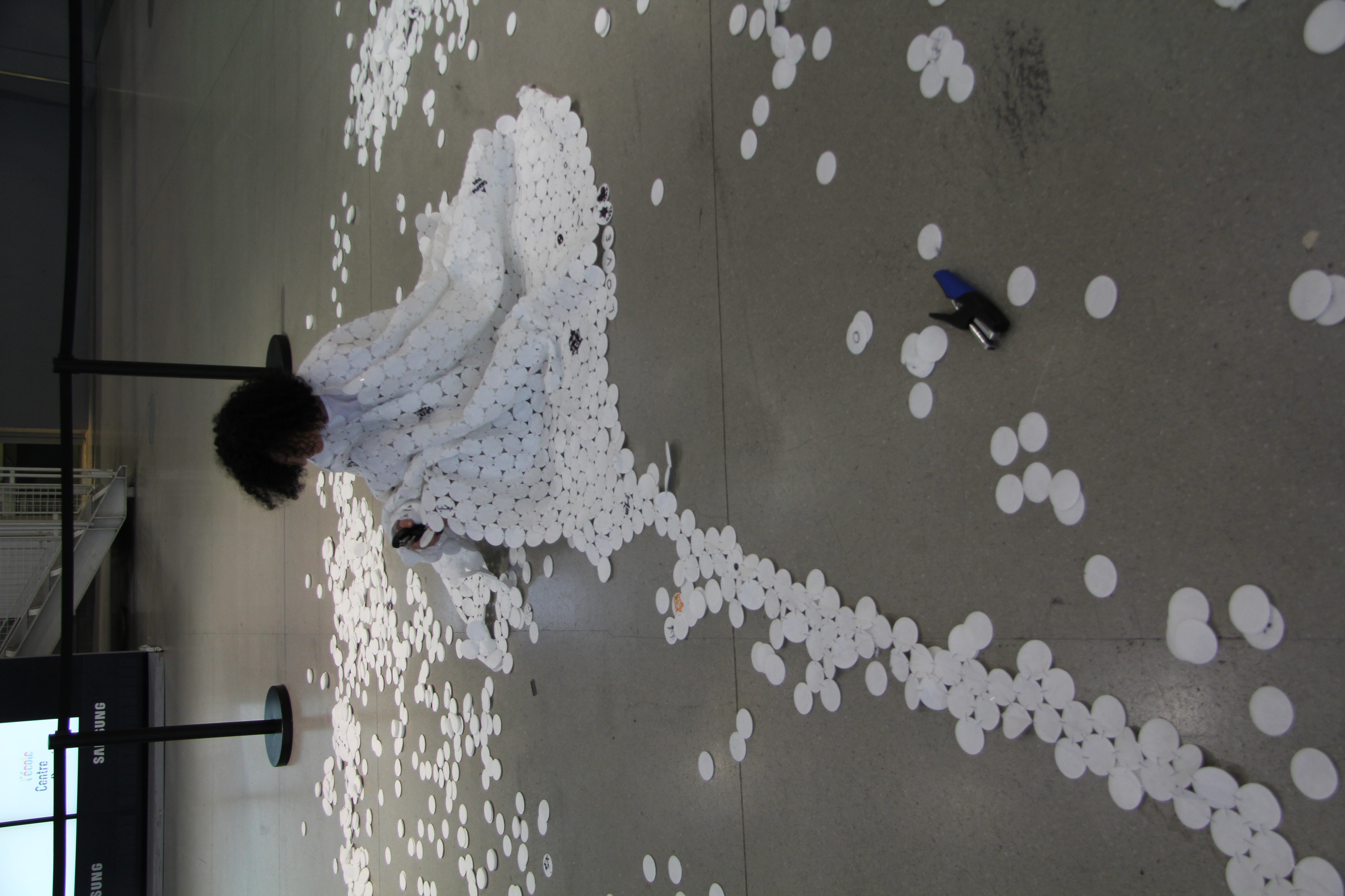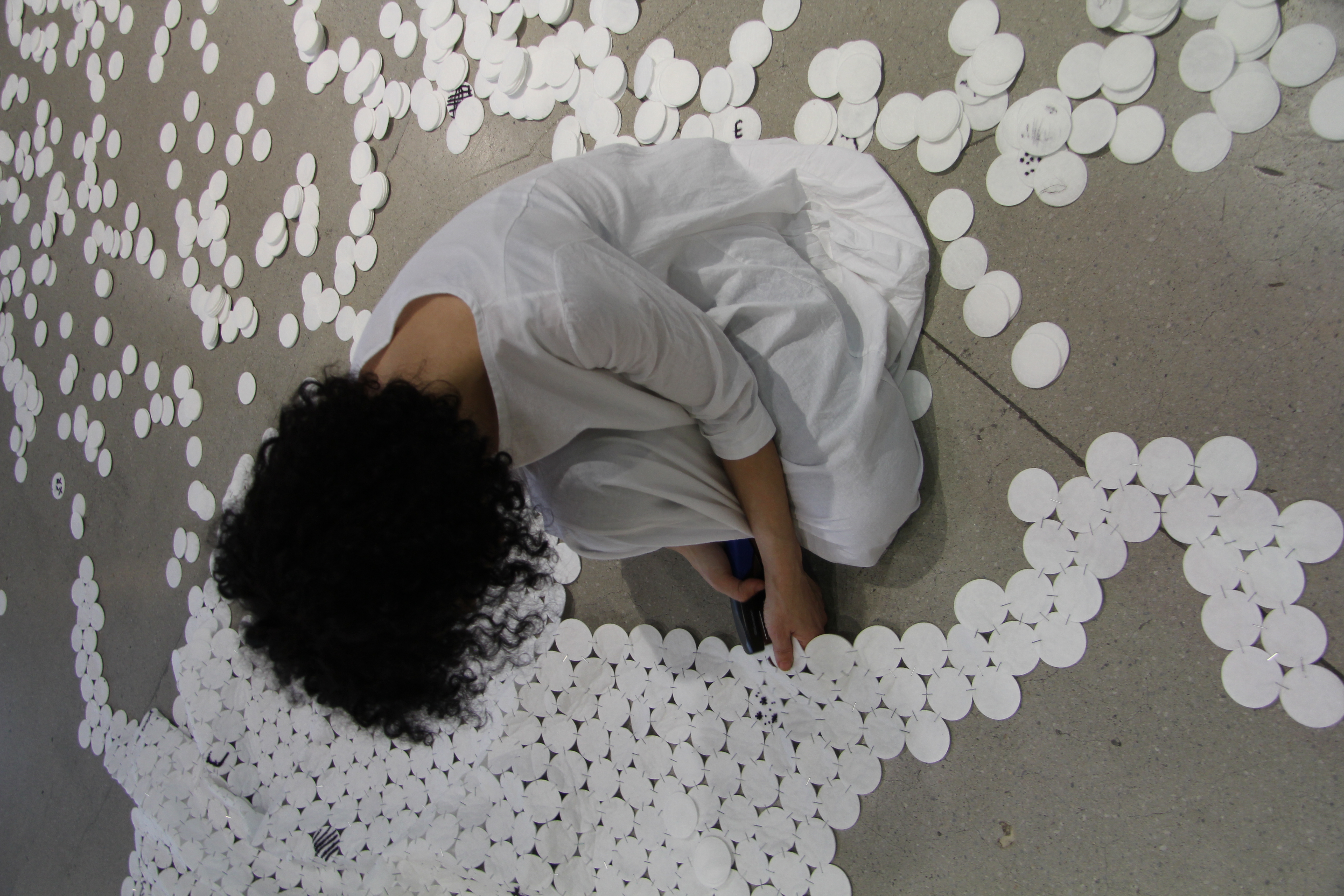Cotton disks, staples, felt pen